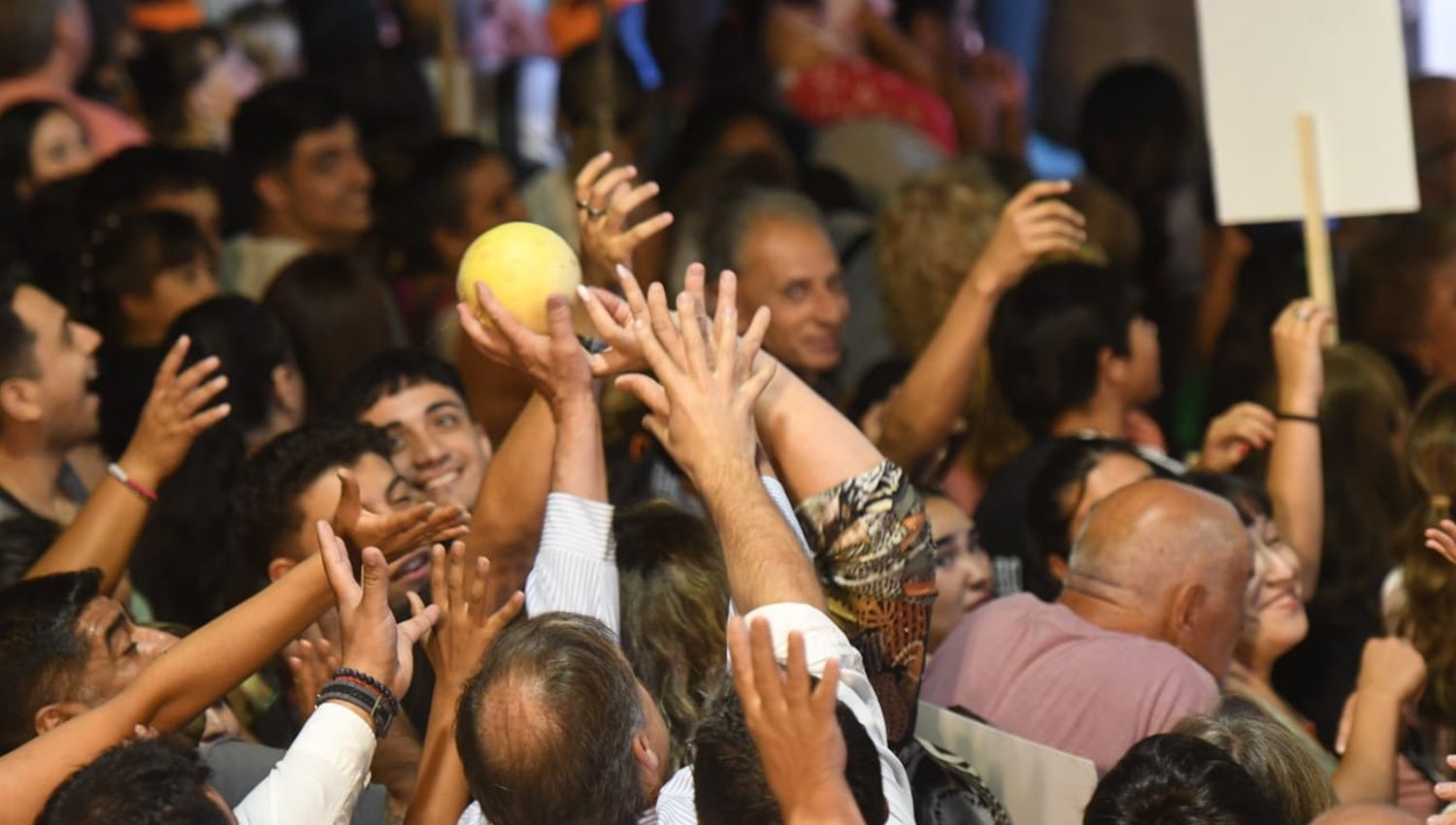 Aunque el público no alcanzó el número de años anteriores -cuando no se podía pasar por las veredas- se hizo sentir con carteles, cánticos y los infaltables canastos para recoger los regalos que arrojan las reinas desde los carros.