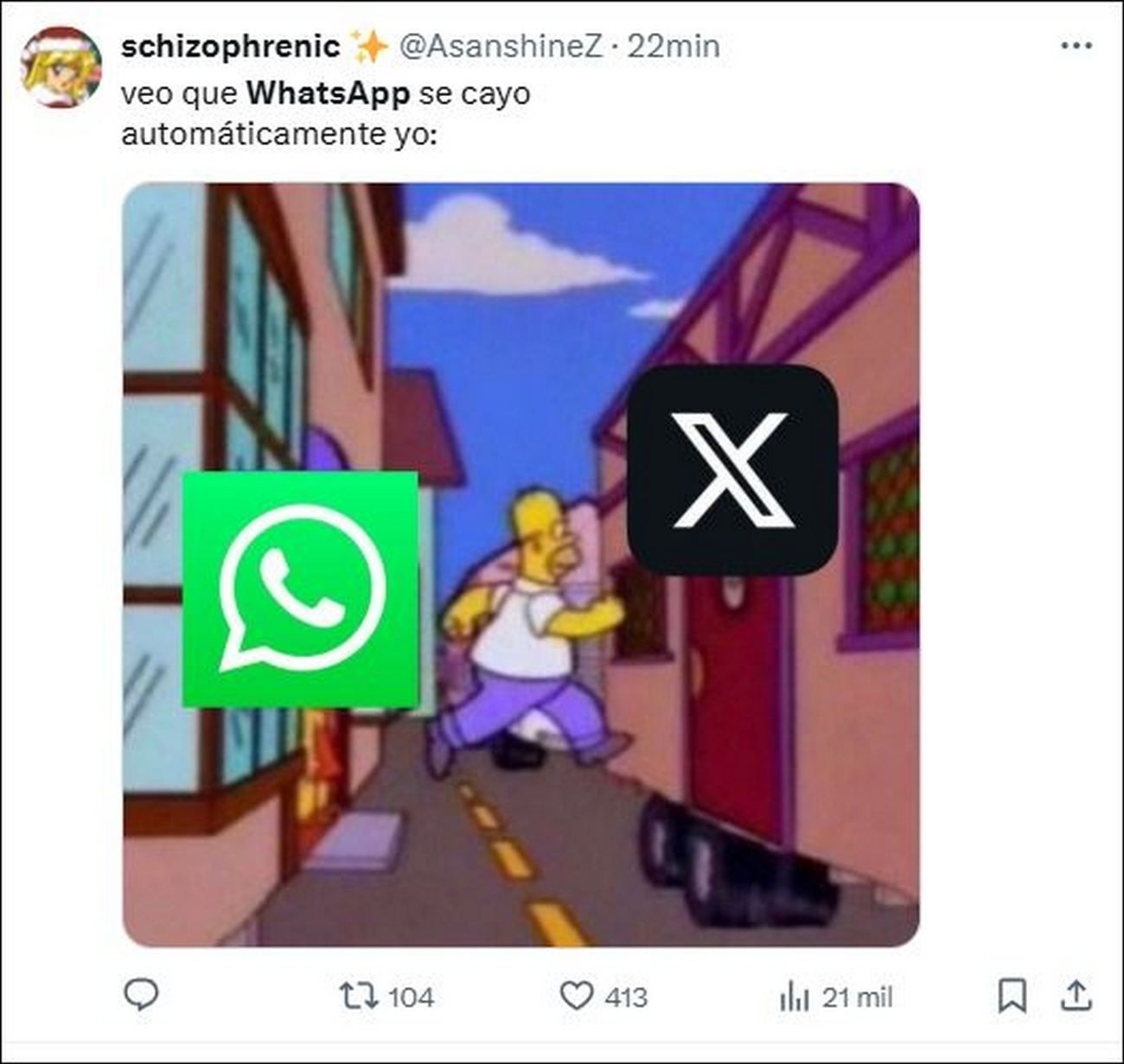 Mientras tanto, X (ex Twitter) se convirtió en el refugio de miles de usuarios que, entre bromas y quejas, hicieron tendencia a WhatsApp con todo tipo de reacciones. Los memes, como siempre en estos casos, fueron los grandes protagonistas:
