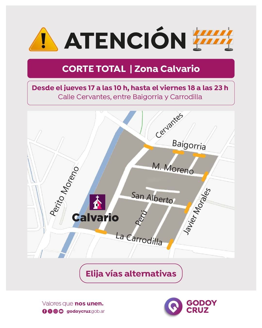 Durante este jueves 17 y el viernes 18 de abril, la Municipalidad de Godoy Cruz dispondrá una serie de cortes de tránsito y operativos especiales en la zona del Calvario, donde cada año se congregan miles de personas para participar del circuito religioso de Semana Santa.