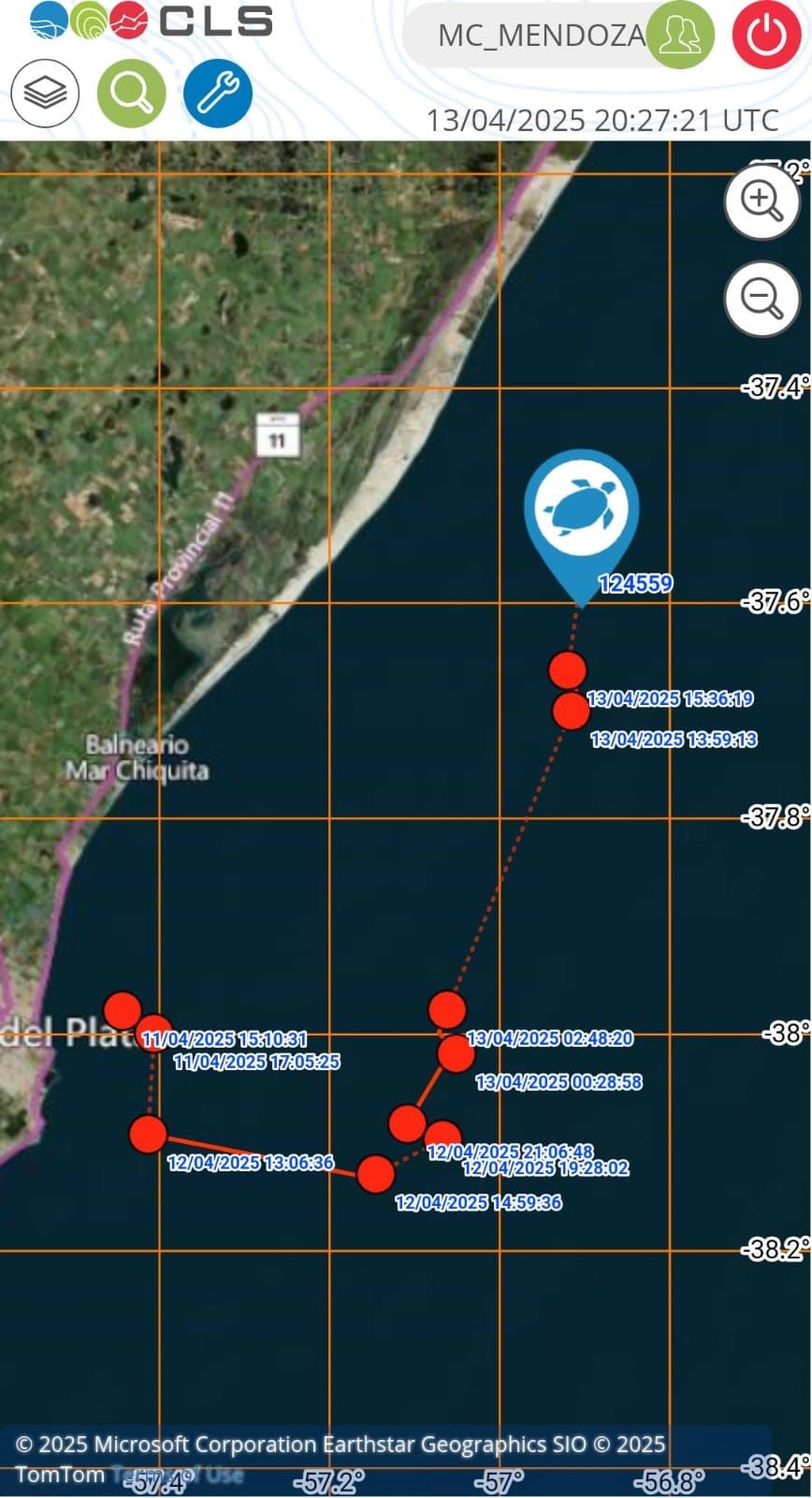 Y agregó: "Recibimos un reporte diario con la última ubicación y se van agregando también otros datos de los kilómetros que lleva desplazado. Esa información que nos cruzamos con los especialistas, incluye los riesgos que enfrenta Jorge en el día a día. Hablaban de la presencia de embarcaciones de barcos pesqueros en la zona".