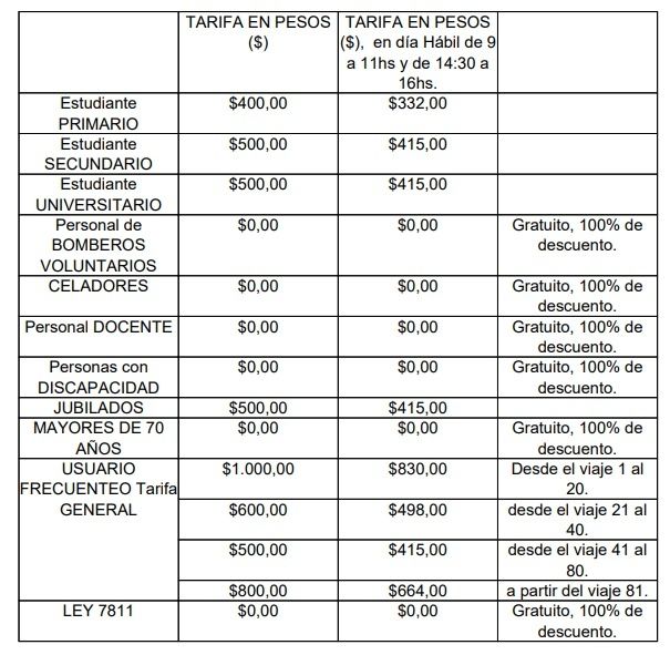 - En el caso del estudiante de nivel secundario y universitario, el boleto costará $500 o $415 en los mismos horarios mencionados.