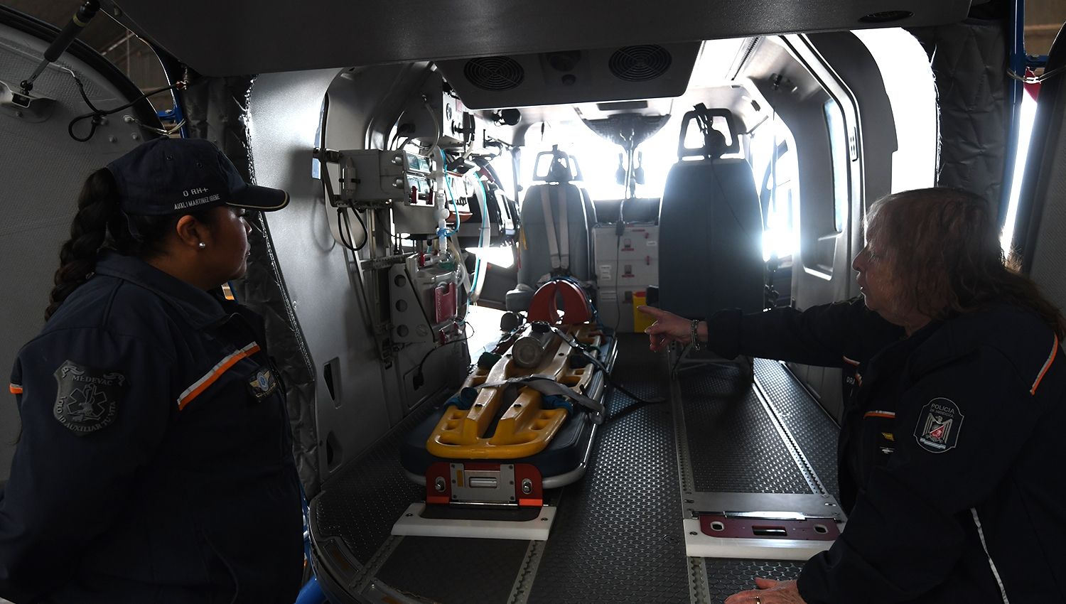 El equipo médico cuenta con equipamiento específico para atender emergencias en pleno vuelo. Según la doctora Noemí Rivero, jefa del grupo de aeroevacuadores del Cuerpo de Aviación, “el helicóptero sanitario de Mendoza es una de las mejores aeronaves del país en su tipo, por su tecnología y capacidad operativa”.