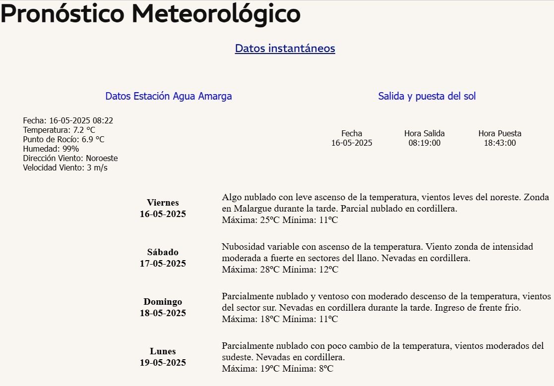 ALF PONCE MERCADO / MDZLas condiciones meteorológicas en Mendoza tendrán un giro brusco este sábado 17 de mayo. Según los reportes oficiales, el viento Zonda comenzará a bajar desde la madrugada y se extenderá a lo largo del día en diversas zonas del territorio provincial, acompañado por ráfagas intensas, suba de temperatura en el llano y mal tiempo en la cordillera.