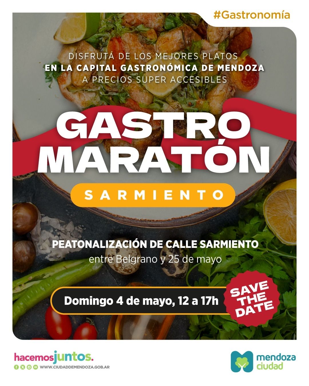 En paralelo a la competencia deportiva, la Ciudad ofrecerá una propuesta gastronómica para disfrutar en familia o con amigos. La calle Sarmiento, entre 25 de Mayo y Belgrano, se transformará en peatonal desde la mañana hasta la tarde. Allí se desarrollará la Gastro Maratón, un evento que reunirá a diversos puestos de comida con opciones a precios accesibles.