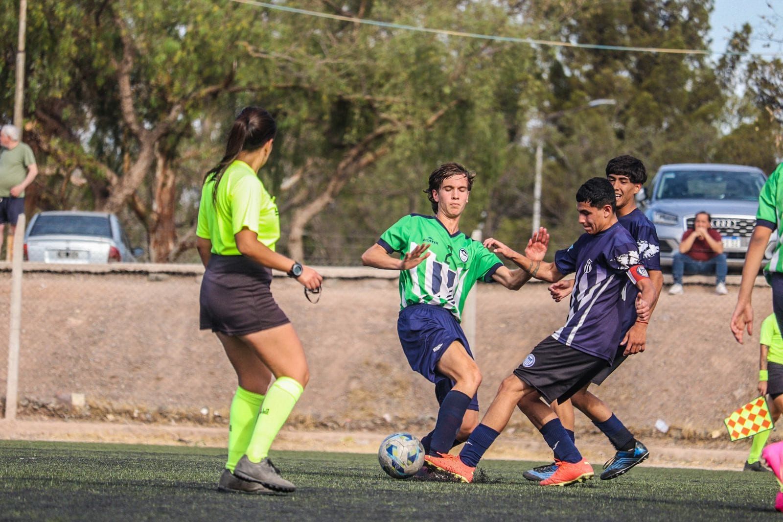 Luego, se anotó al curso en la Liga Mendocina y aprendió que arbitrar no es solo soplar el silbato o levantar la bandera. “Tenés que dominar técnicas, gestos, posturas, transmitir seguridad y ser entendida por toda la cancha”. Su debut fue en inferiores masculinas y vivió una primera experiencia respetuosa. “Todos sabían que era mi primer partido. Desde el club hasta los papás. Me trataron muy bien, me explicaron, me dieron confianza”, agregó.
