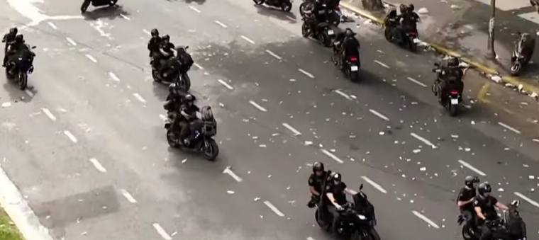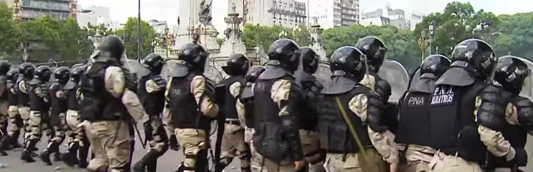 Junto a la gran presencia de la Policía Federal en la Plaza del Congreso, que además, ya detuvo varios manifestantes más, se da la llegada de Prefectura y Policía Motorizada.