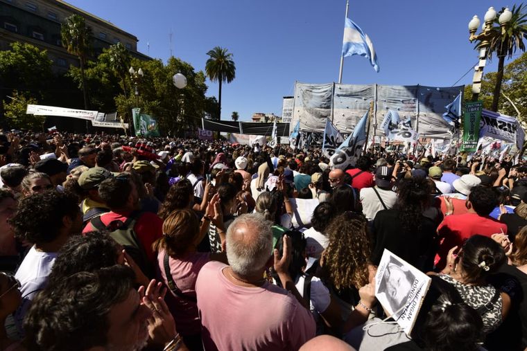 Con el paso de las horas, el espacio frente a la Casa Rosada comenzó a colmarse de organizaciones, militantes y asistentes que participaron de la movilización.