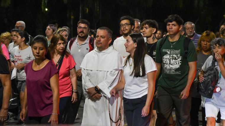 Algunos iban rezando, otros cantando canciones religiosas, algunos hablando de los problemas que los aquejaban. Cerca de las 21 el tránsito colapsó y la procesión ocupó los dos carriles. Los fieles pasaban entre los autos con las antorchas en las manos y respondía a toda voz los "Viva María" que coreaba el locutor.