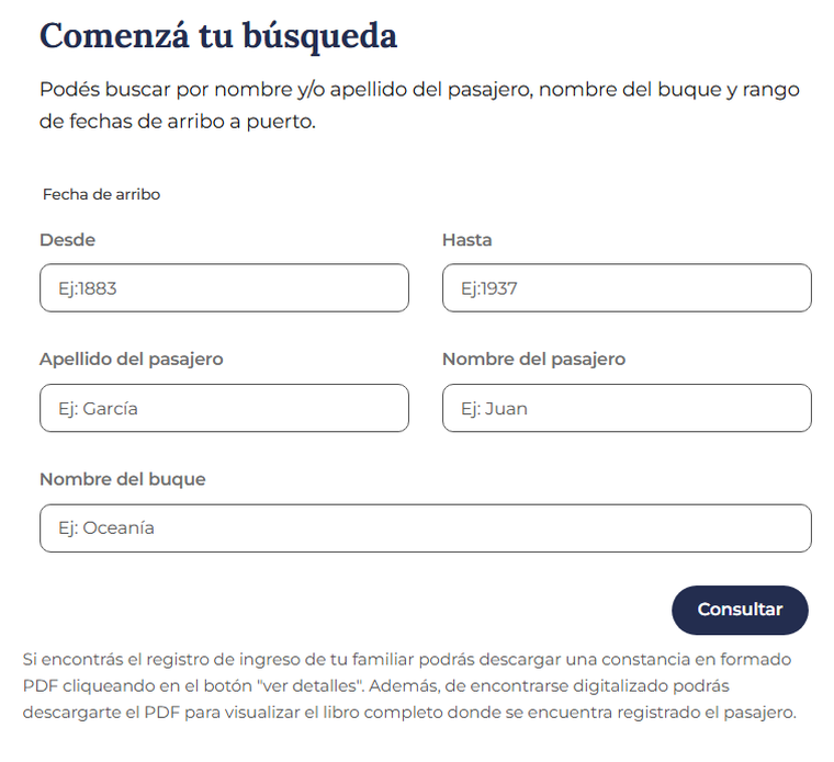 Para facilitar esa búsqueda, el Gobierno ofrece un portal donde se pueden consultar los registros de quienes arribaron al país entre 1882 y 1937. El sitio es este: https://www.argentina.gob.ar/interior/archivo-general-de-la-nacion/consulta-de-antecedentes-migratorios