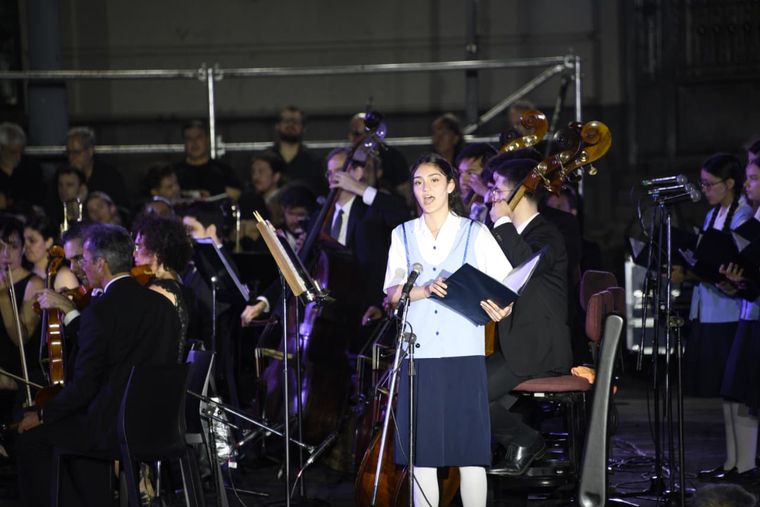 El programa incluye obras emblemáticas del repertorio universal y nacional, como Va pensiero, Salut Printemps de Debussy, fragmentos de la Misa Criolla, Balada para un loco, Quejas de bandoneón y Libertango, con la participación conjunta de orquestas, coros y ballets. A lo largo del evento, cada interpretación es recibida con una ovación del público, que acompaña esta velada cargada de emoción y simbolismo.