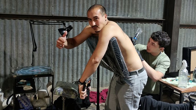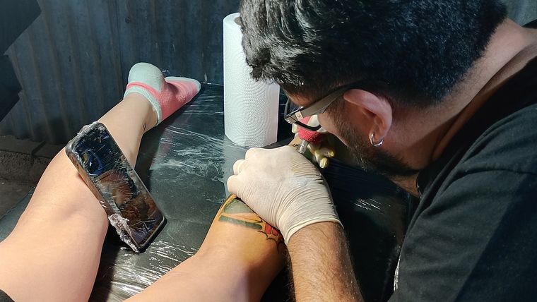 Florencia llevaba varias horas recostada sobre la camilla, mientras Ramiro realizaba su arte usando la piel como lienzo. "Acordamos hacer un Joker con un Batman", dice Florencia. El tatuaje es parte de su vida y, de hecho, tiene dibujada la espalda. En la Expo Tattoo que se realizó en la Nave Cultural hubo artistas de todo el país y los diseños sorprendieron.