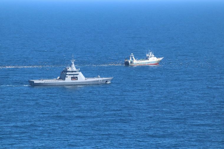 El Gobierno habilitó el paso de pesqueros chinos por la ZEE para resguardo durante un temporal. Armada y Prefectura despliegan un operativo de control estricto.