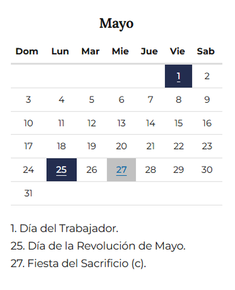 La segunda fecha marcada en el calendario de clases será el lunes 25 de mayo. Al caer al comienzo de la semana, también dará lugar a otro fin de semana largo de tres días, con una nueva pausa en la actividad escolar antes del cierre del mes.