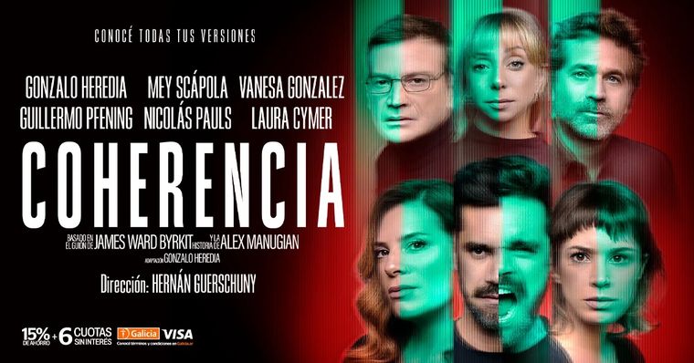 “Coherencia” se presentará en calle Corrientes con un elenco de lujo bajo la dirección del director de cine y por primera vez en teatro, Hernán Guerschuny. La historia se mete de lleno en una pregunta tan inquietante como actual: ¿Qué pasaría si te encontraras con otra versión de vos mismo?