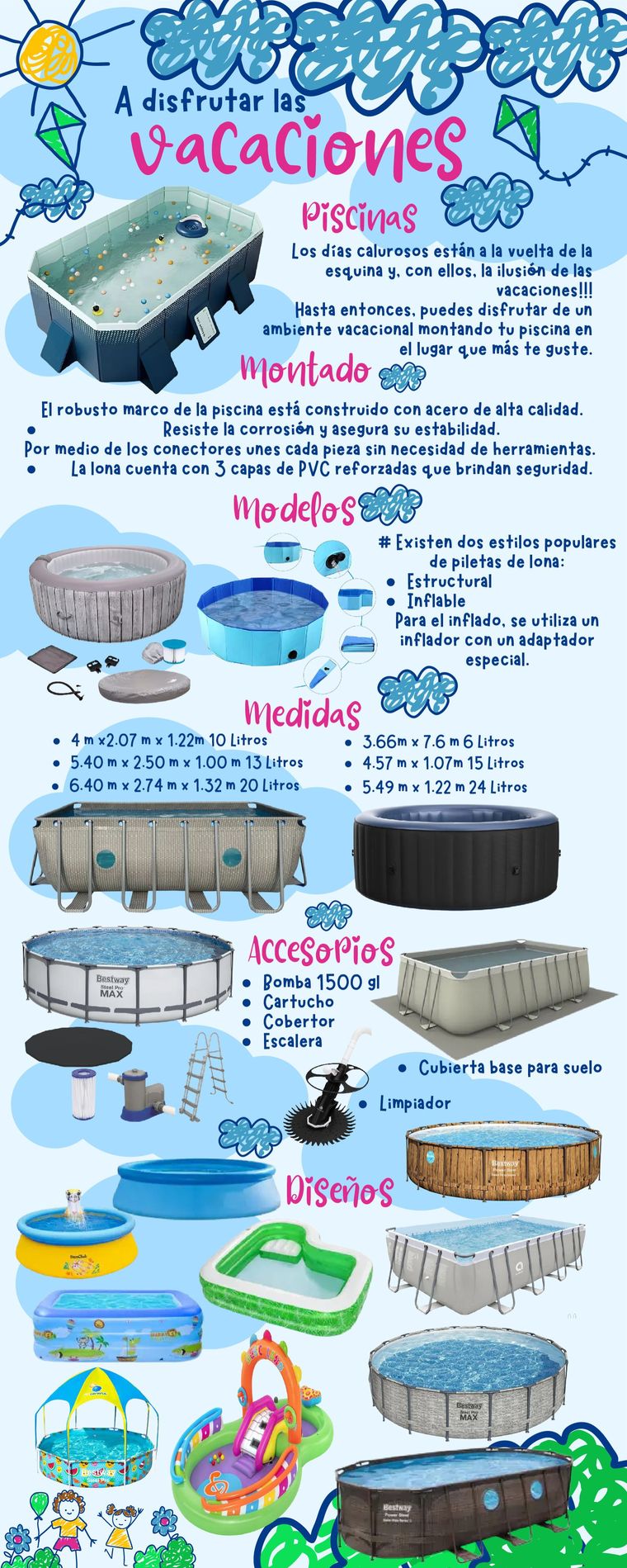 - Accesorios de seguridad para niños: cercos de protección, cubiertas y flotadores garantizan mayor tranquilidad a los padres. Además, estos elementos ayudan a cumplir normas básicas de seguridad y reducen el riesgo de accidentes durante el uso diario.