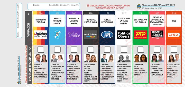 A diferencia de las boletas partidarias tradicionales, la BUP presenta todas las opciones en una sola hoja. Las columnas corresponden a los partidos o agrupaciones políticas, mientras que las filas muestran las categorías de votación: diputados y senadores nacionales, o sólo diputados, según el caso.