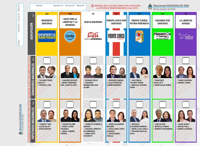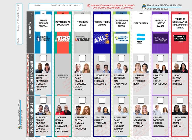 - El segundo modelo corresponde a los 8 distritos que renuevan tanto diputados como senadores nacionales: Salta, Neuquén, Río Negro, Tierra del Fuego, Chaco, Santiago del Estero, Entre Ríos y Ciudad de Buenos Aires.