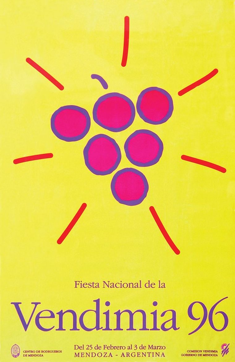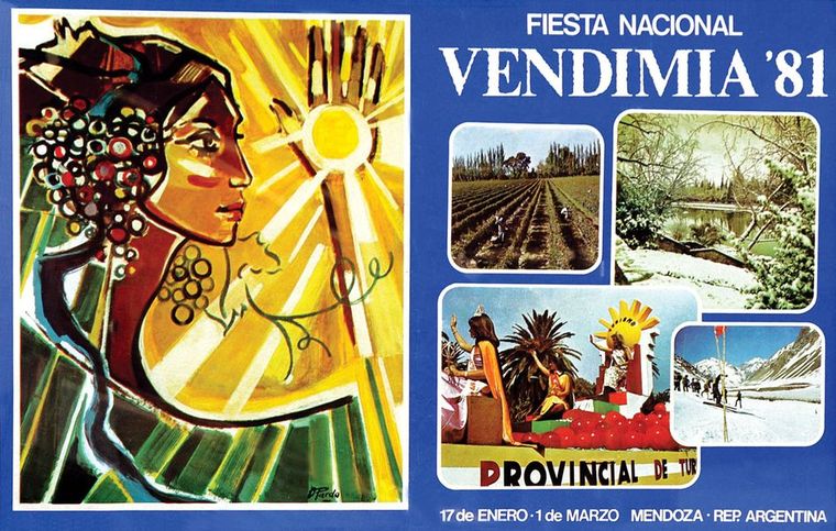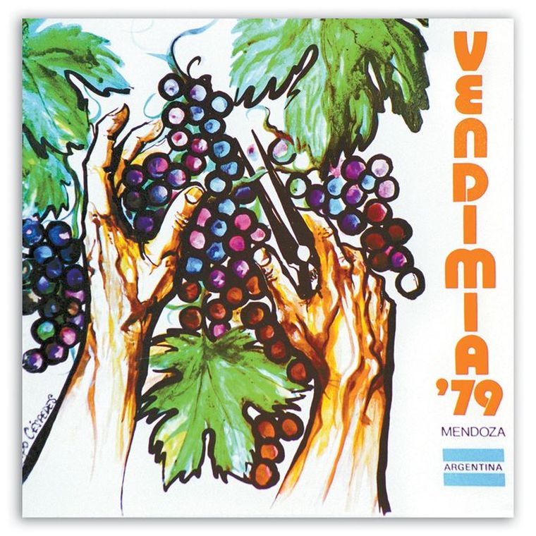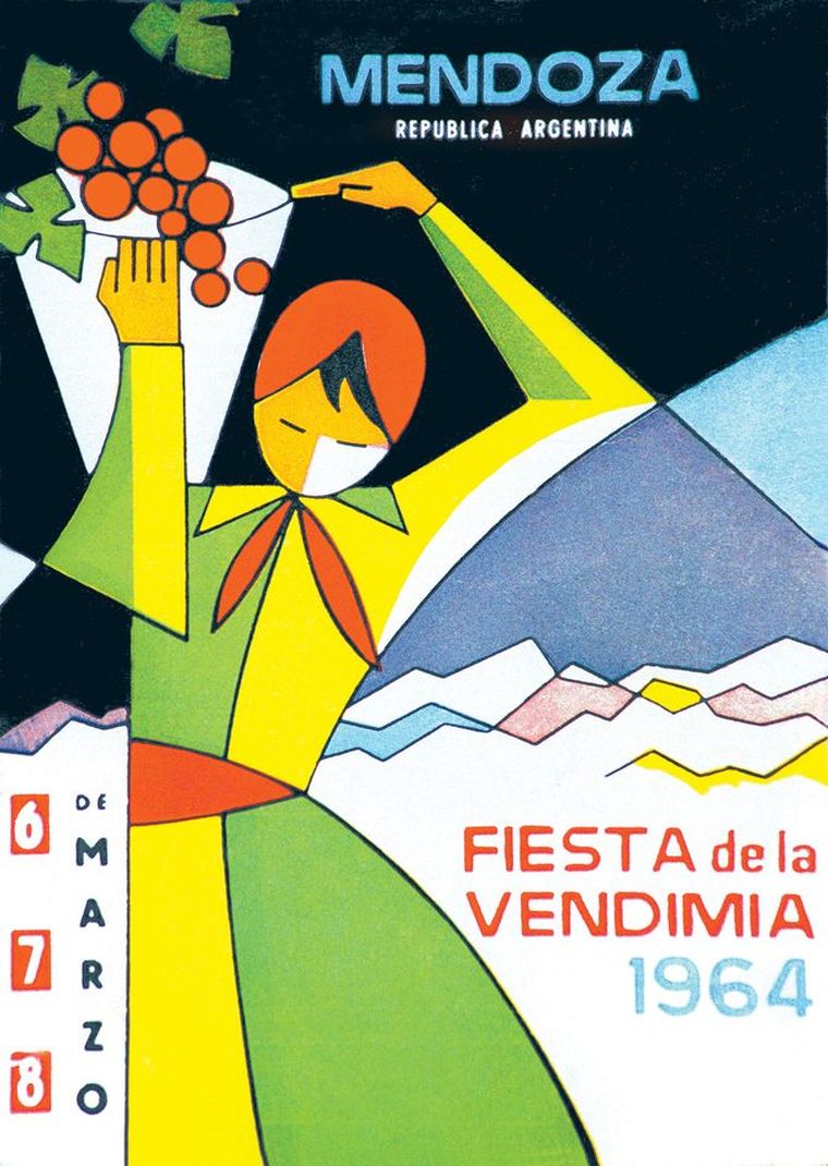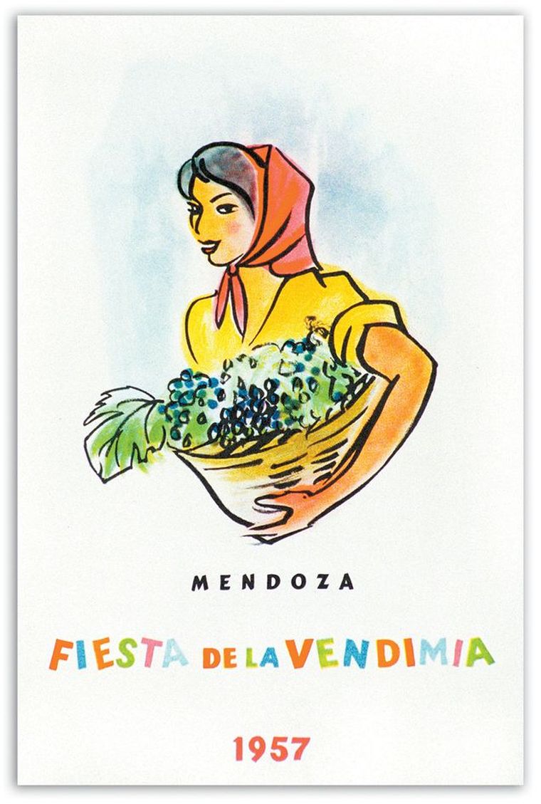 El primer diseño marcó el rumbo. La figura de la mujer vendimiadora, el paisaje mendocino y la referencia directa al trabajo de cosecha establecieron un punto de partida visual que, con distintas reinterpretaciones, se mantuvo a lo largo del tiempo. Esa imagen inicial no solo presentó una fiesta, sino también una identidad.