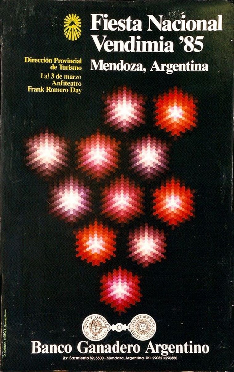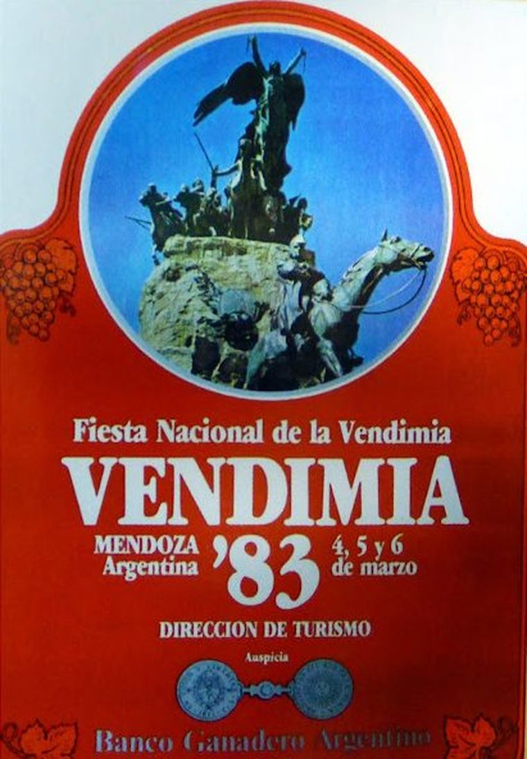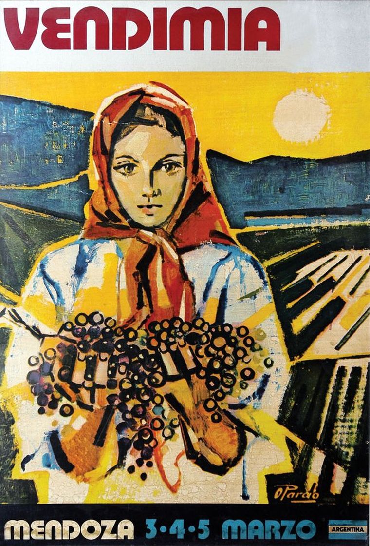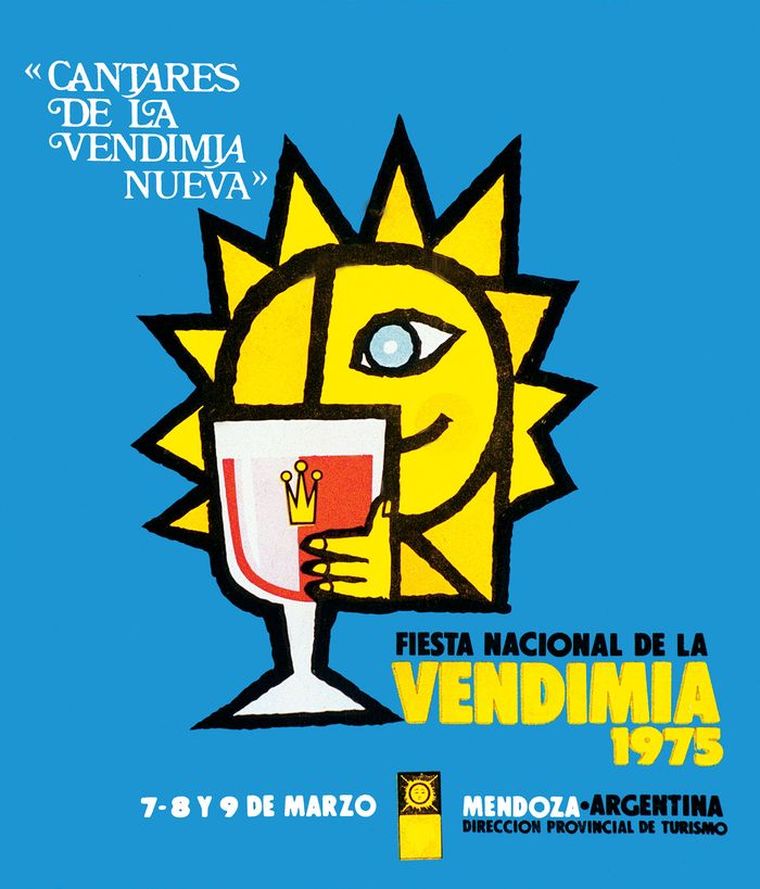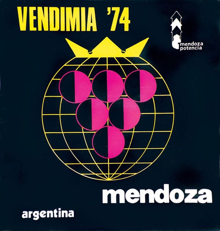 El primer diseño marcó el rumbo. La figura de la mujer vendimiadora, el paisaje mendocino y la referencia directa al trabajo de cosecha establecieron un punto de partida visual que, con distintas reinterpretaciones, se mantuvo a lo largo del tiempo. Esa imagen inicial no solo presentó una fiesta, sino también una identidad.