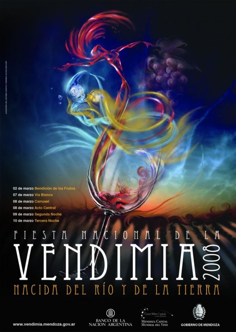 Más allá de esos intervalos, el afiche se consolidó como la tarjeta de presentación de la celebración. La vid, el racimo, la cordillera y la figura femenina aparecieron una y otra vez, reinterpretados por distintos artistas y equipos de diseño. Cada año sumó una nueva mirada sobre la misma tradición.