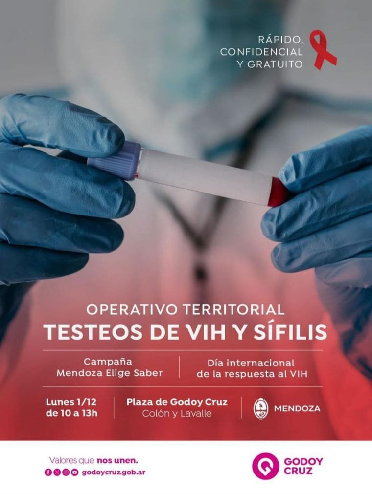 Este lunes 1 de diciembre, en la plaza de Godoy Cruz habrá testeos de VIH y de sífilis, gratis y confindenciales. Sólo hay que acercarse. Son el marco de la campaña Elige Saber.