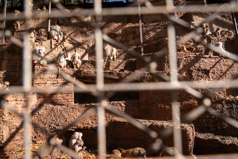 Se trata del lugar donde estaban las jirafas del Ecoparque. Ahora viven 200 monos papiones a los que se le colocaron microchips. Castraron a los machos.