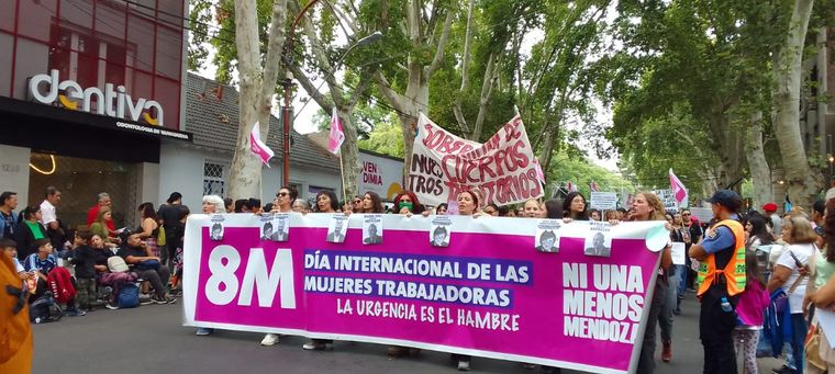 La movilización coincidió además con las actividades por el 8 de marzo, Día Internacional de la Mujer Trabajadora. Organizaciones feministas nucleadas en Ni Una Menos Mendoza participaron de la marcha con consignas vinculadas a la defensa de los derechos laborales, la lucha contra la violencia de género: "Por la soberanía de nuestros cuerpos y territorios. En defensa de nuestros derechos laborales. Contra la violencia y la represión de Cornejo y Milei. Fuera Riili", este último es el comisario Mario Riili investigado por detención ilegal de manifestantes, violencia institucional y de género por la particular saña contra las mujeres que se movilizaron el 23 de octubre pasado en defensa del agua.