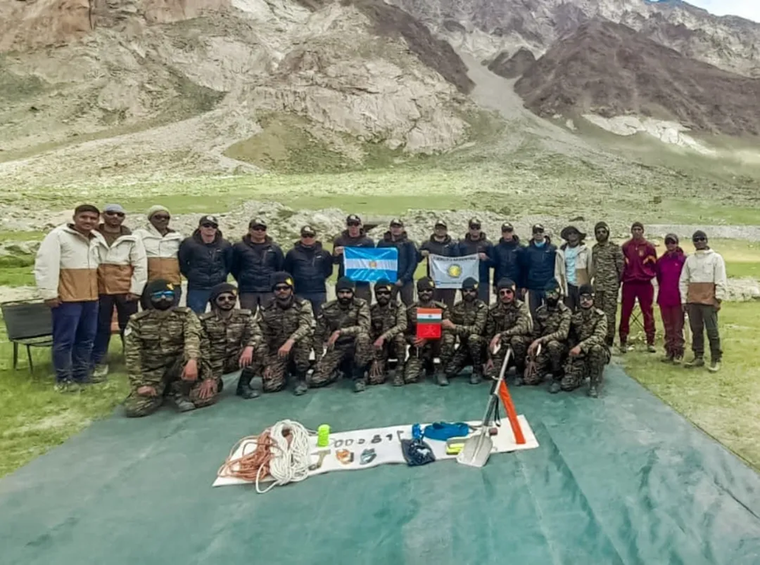 Una patrulla conjunta del Ejército Argentino y la India alcanzó la cima del Monte Kun, marcando un hito para las tropas de montaña argentinas en el extranjero.