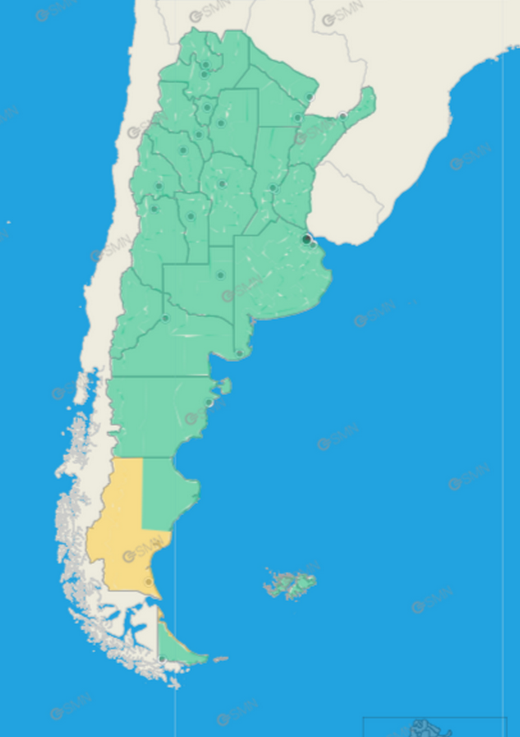 Las áreas alcanzadas por el aviso del SMN incluyen Buenos Aires, La Pampa, Entre Ríos, Santa Fe, Córdoba, San Luis, San Juan, La Rioja, Catamarca, Santiago del Estero, Tucumán, Salta y Jujuy.