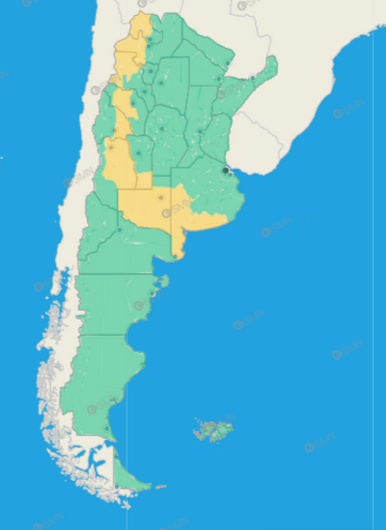 El Servicio Meteorológico Nacional (SMN) lanzó alertas amarillas por tormentas fuertes en nueve provincias del centro y norte del país, en el marco de una ola de calor extremo que afecta a gran parte del país y complica a la Patagonia con los incendios.
