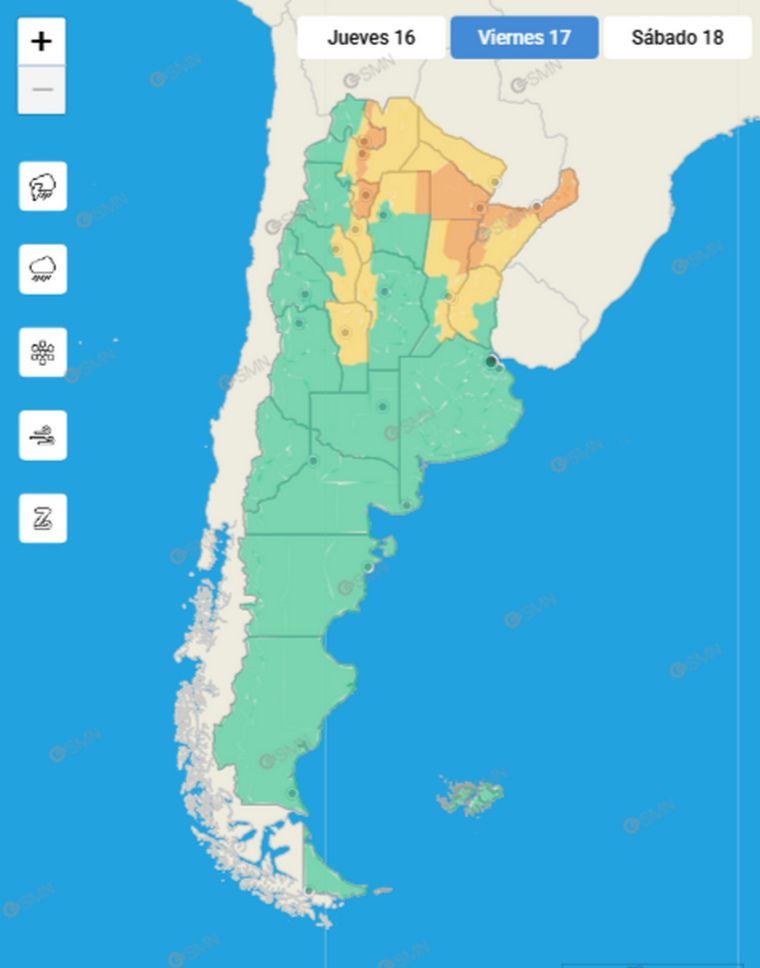 Otras áreas cercanas, como el centro y sur de Corrientes, el norte de Misiones, el oeste de Chaco, Santiago del Estero, Tucumán, Salta y Jujuy, permanecen bajo alerta amarilla. Allí también podrían darse lluvias y tormentas, aunque más aisladas y con menor severidad.