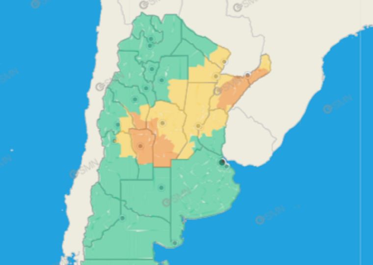 El Servicio Meteorológico Nacional (SMN) actualizó alertas amarilla y naranja por tormentas fuertes que afectarán al Litoral, el NEA y el centro del país.
