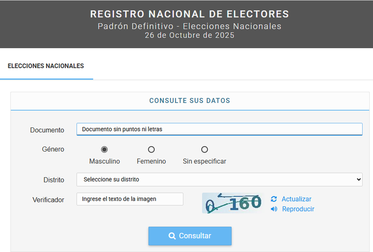 A partir de este martes, todo ciudadano podrá ingresar al sitio web para consultar dónde vota. El padrón electoral permanecerá activo hasta el día de las elecciones. Además, quienes detecten errores u omisiones en los datos pueden solicitar su corrección hasta el 26 de septiembre.
