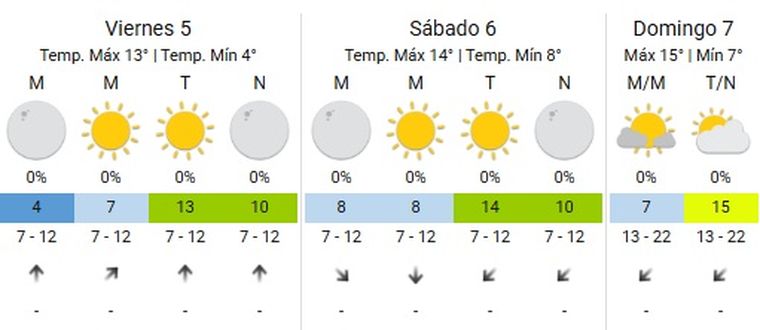 El sur comenzó el fin de semana sin probabilidad de lluvias y con temperaturas acordes a la zona. Según informó el ente nacional, esta semana tendrán máximas cercanas a los 11° y mínimas que rondarán los 0°.