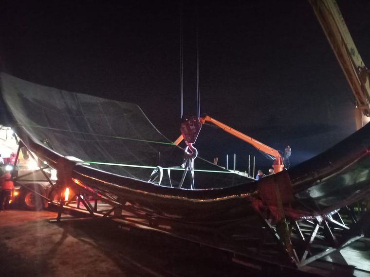 La intervención se inició después del colapso de dos de los seis pétalos ocurrido el 17 de diciembre de 2023, cuando un fuerte temporal azotó gran parte de la provincia de Buenos Aires. Desde entonces, la obra atravesó un extenso proceso de licitación, reconstrucción y modelaje, que incluyó tareas especializadas para garantizar la resistencia y estabilidad de la estructura.
