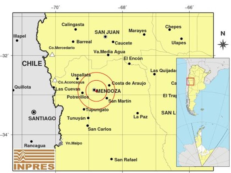 Según los datos del Instituto Nacional de Prevención Sísmica, INPRES, el Temblor fue de una magnitud de 6.1. En Chile mencionan que fue de 6.2.