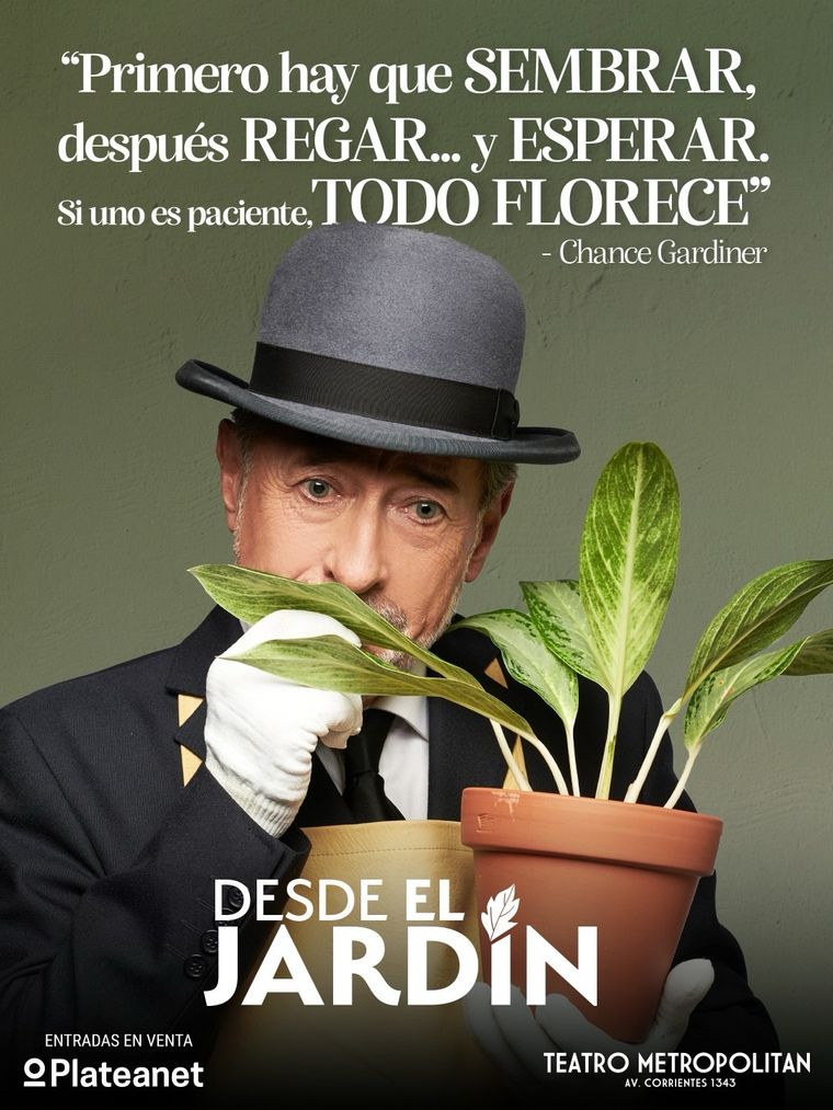 “Desde el Jardín” cuenta la historia de Chance Gardiner (Guillermo Francella); unhombre de inteligencia limitada, criado toda su vida dentro de la mansión de un rico benefactor. No sabe leer ni escribir; su único conocimiento proviene del cuidado del jardín y de lo que ve en la televisión, su único contacto con el mundo. Cuando el benefactor muere y Chance es expulsado de la casa, viéndose obligado a integrarse a la sociedad.