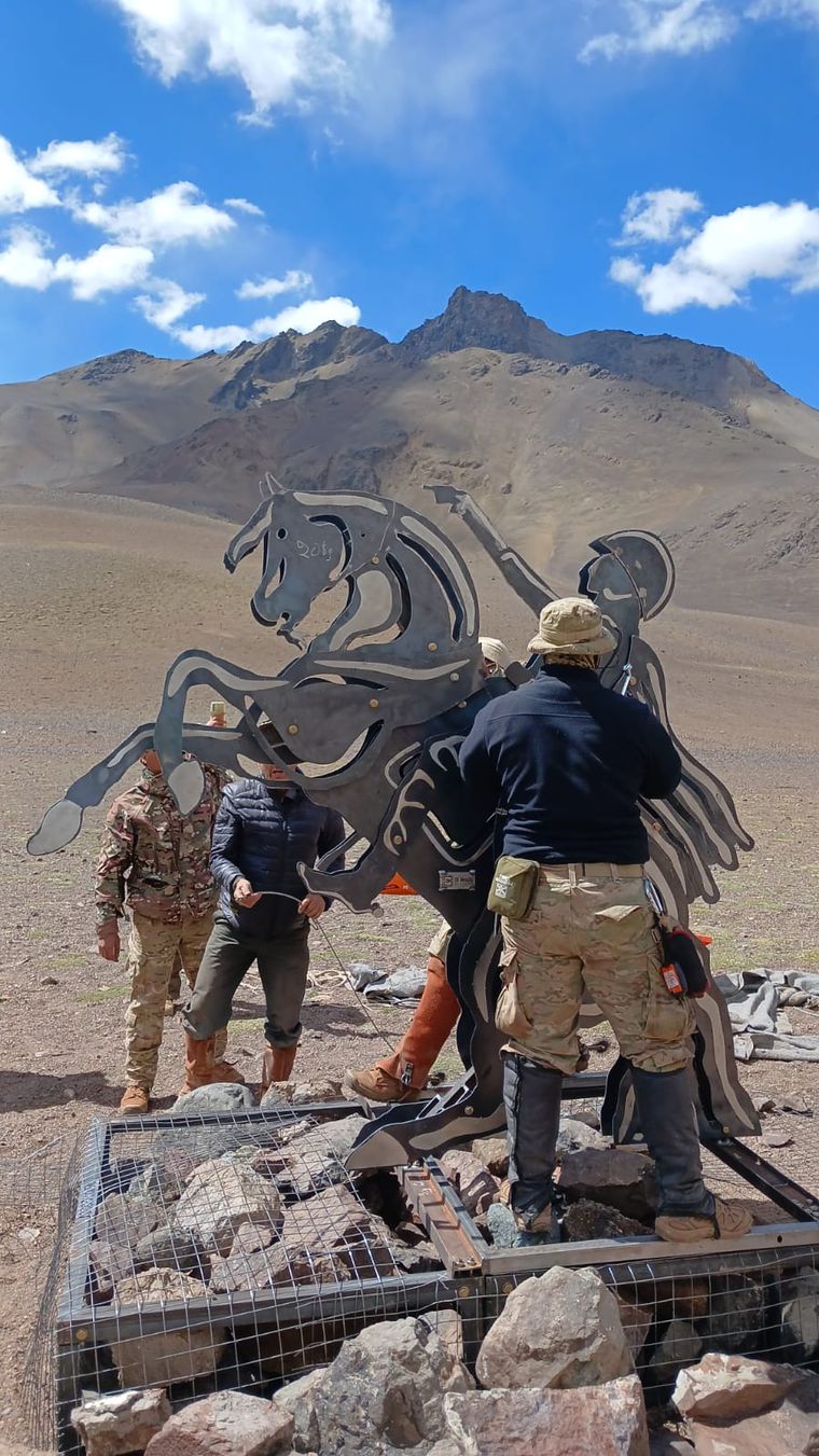 “Nos propusimos dejar algo realmente digno ahí arriba”, contó Iribas, que hace seis años trabaja como guía en el paso Pato Sur y también se desempeña en el Aconcagua. La intención era dejar algo en homenaje al General, ya que, según contó Iribas: “Había dos bustos que se estaban ya destruyendo y se terminaron de romper junto con el monolito donde estaban”, explicó.