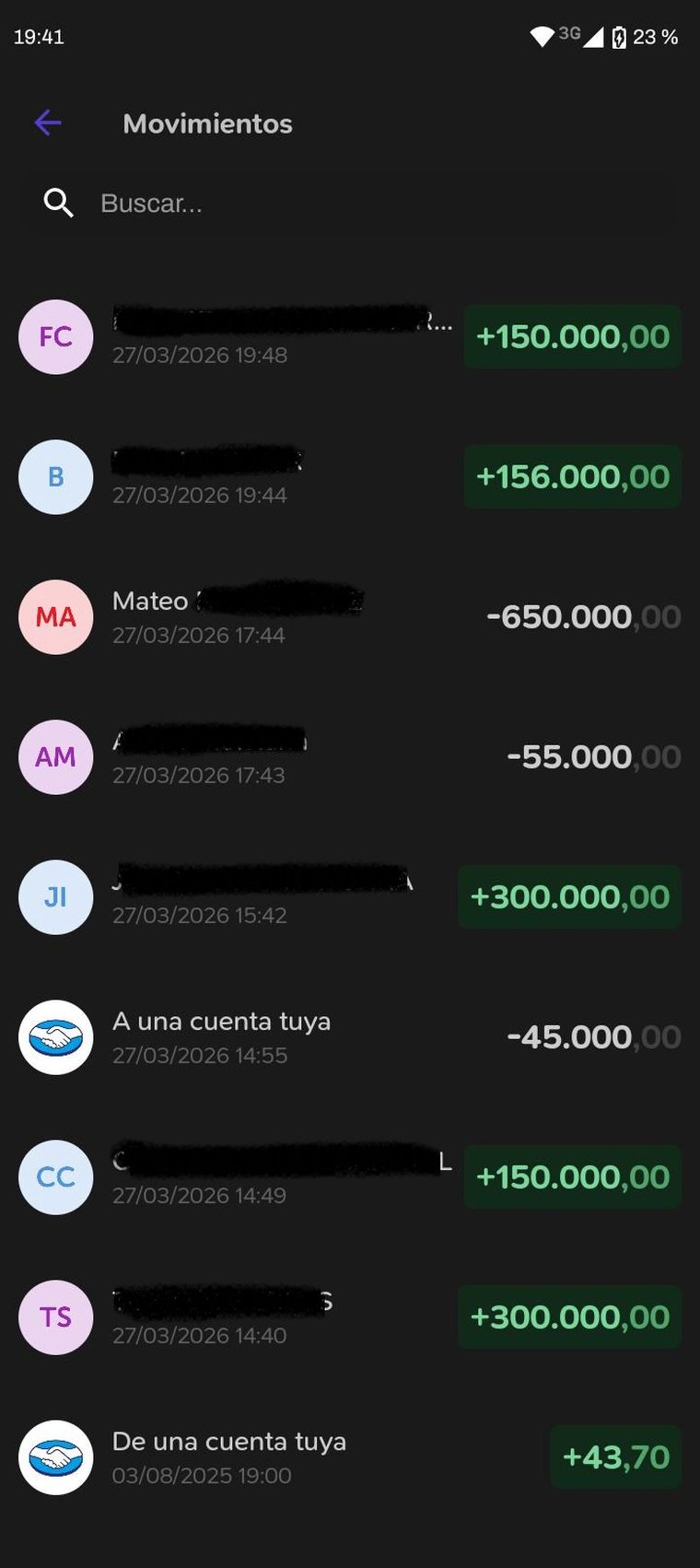Pasadas las seis horas que el banco le había puesto de plazo para volver a acceder a su cuenta, el santafesino volvió a comunicarse con el mendocino y le pasó captura de todos los movimientos que la cuenta había tenido durante los últimos tres días. Ahí se podía ver que la plata que ingresaba era transferida automáticamente a otra cuenta de Mercado Pago. El dato de esa información era que figuraba el nombre y el cuil del titular.