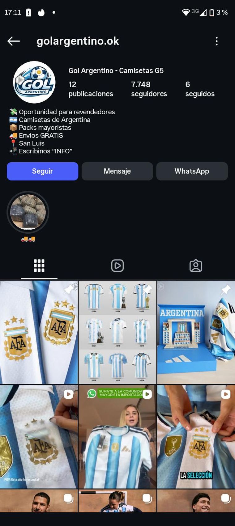 "Gol Argentino" se presentaba en sus redes como un proveedor confiable ya que, además de dejar un número de contacto (donde figuraba hasta la dirección de dónde estaban ubicados), tenía tienda online con referencias de supuestos clientes y un perfil de Instagram atractivo donde mostraba actividad constante e interacción con sus seguidores.