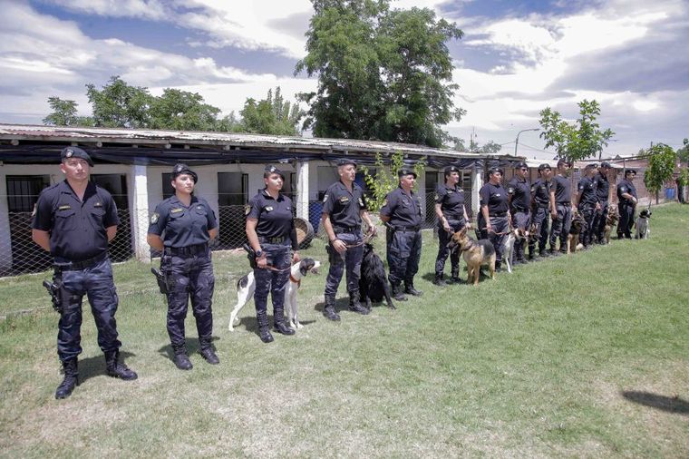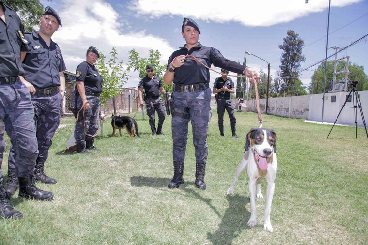 Los ovejeros alemanes se entrenan para allanamientos, control de disturbios e intervenciones de alto riesgo. Actualmente, la delegación entrena a Milo, de un año, y Malvina, de 5 meses, ambos ovejeros alemanes, para tareas de seguridad. El adiestramiento de los perros puede durar entre 2 y 4 años, dependiendo de su especialidad.