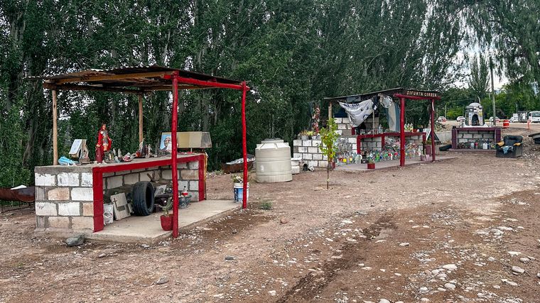 A pocos metros del sitio original, y ya fuera del sector intervenido, comienza a configurarse un nuevo espacio de devoción. Sobre un tramo de tierra ubicado junto al Parque El Mirador -pasando los viñedos de Durigutti Family Winemakers- se observan construcciones improvisadas que alojan imágenes y ofrendas dedicadas a la Difunta Correa, el Gauchito Gil, San La Muerte y San Expedito.