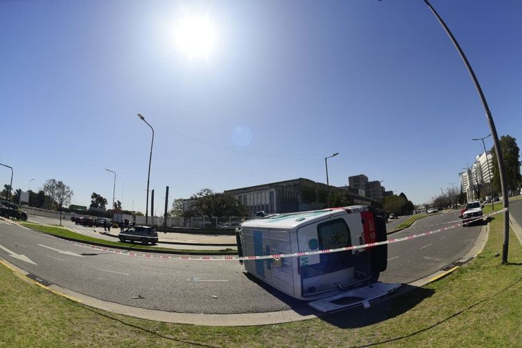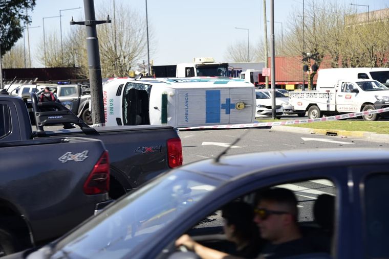 Una ambulancia volcó de camino al incendio