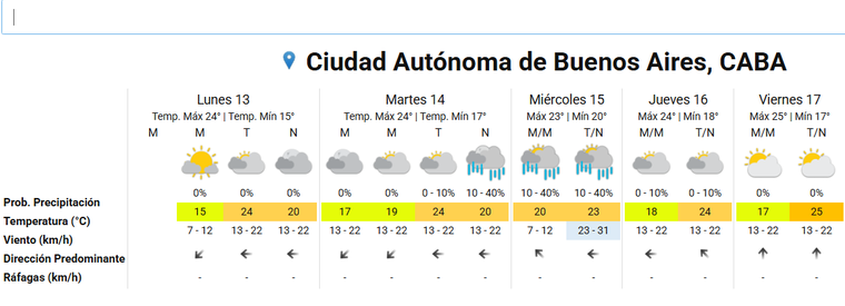 El pronóstico del SMN anticipa una semana con nubosidad en aumento y chances de lluvias desde la noche del martes en la Ciudad de Buenos Aires.
