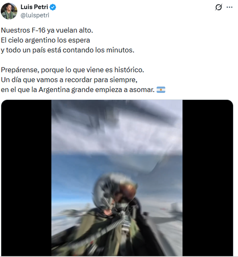 En sus redes sociales, el ministro de Defensa, Luis Petri, destacó la magnitud del operativo y la relevancia de esta incorporación para el futuro de la aviación militar nacional. “Nuestros F-16 ya vuelan alto. El cielo argentino los espera y todo un país está contando los minutos. Prepárense, porque lo que viene es histórico. Un día que vamos a recordar para siempre, en el que la Argentina grande empieza a asomar”, escribió el funcionario que dejará el cargo el 10 de diciembre, cuando asuma una banca en el Congreso.