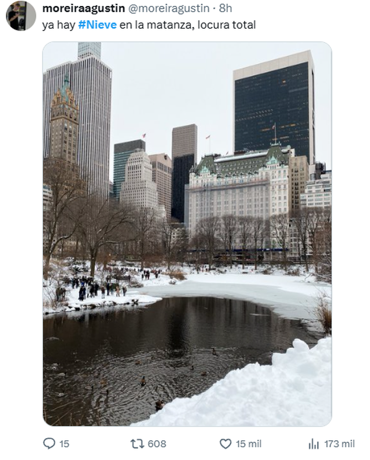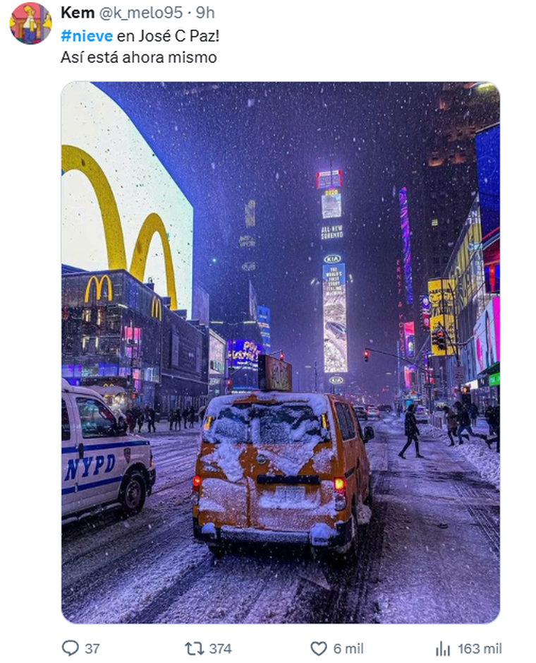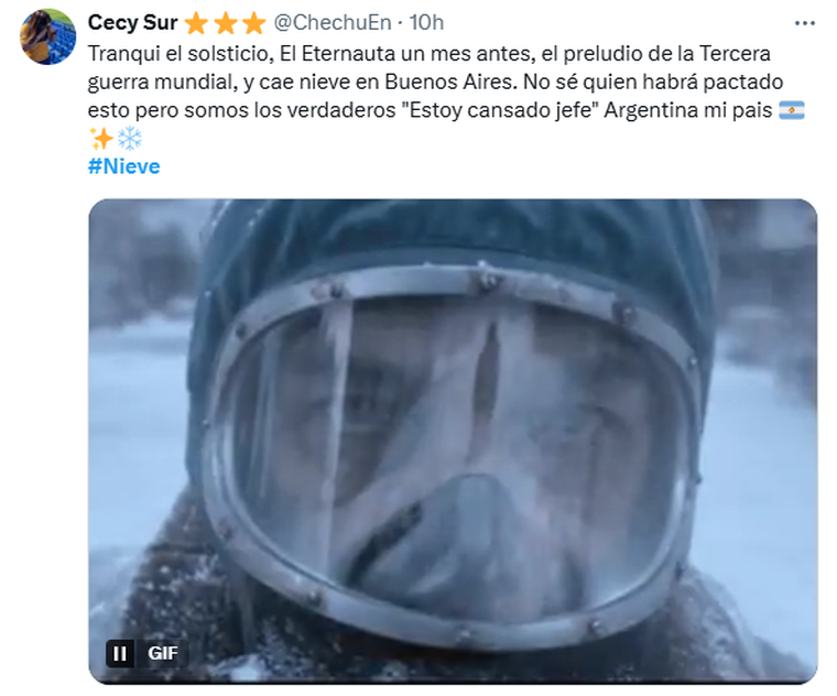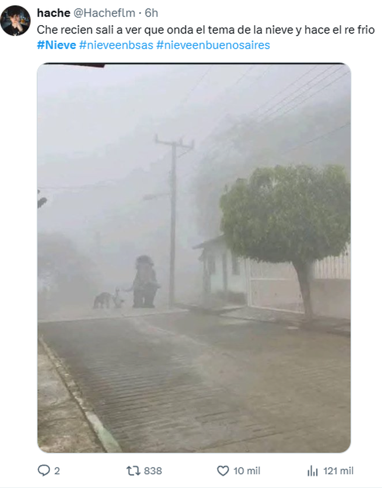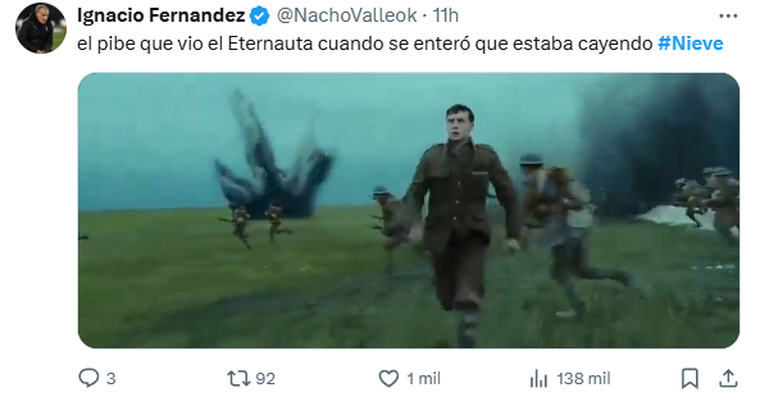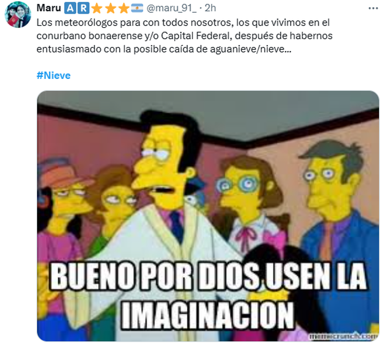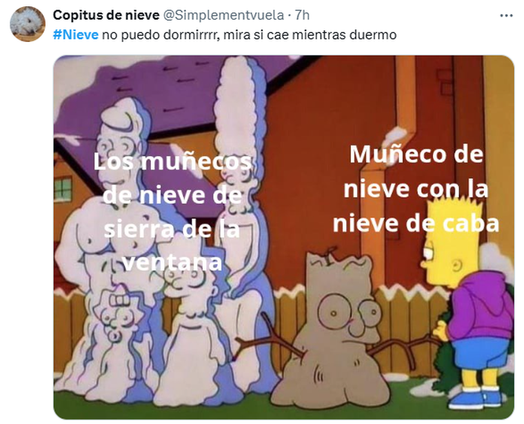 Y, como en cada oportunidad, no faltó la cuota de humor para afrontar la situación. Antes y durante la caída de nieve, varios usuarios compartieron memes para provocar risas en la comunidad virtual.