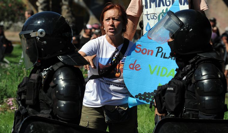 Ambientalistas y asambleas del agua se convocaron a una concentración en el kilómetro cero -San Martín y Peatonal Sarmiento- desde las 19. Luego marcharon por avenida San Martín hacia Las Heras. Lo hicieron de manera pacífica y sin desmanes de ningún tipo.