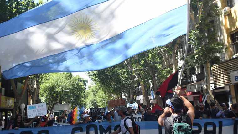 Manifestantes se convocaron en el centro de la Ciudad de Mendoza para marchar en contra del proyecto minero San Jorge que fue aprobado hoy en la Legislatura.