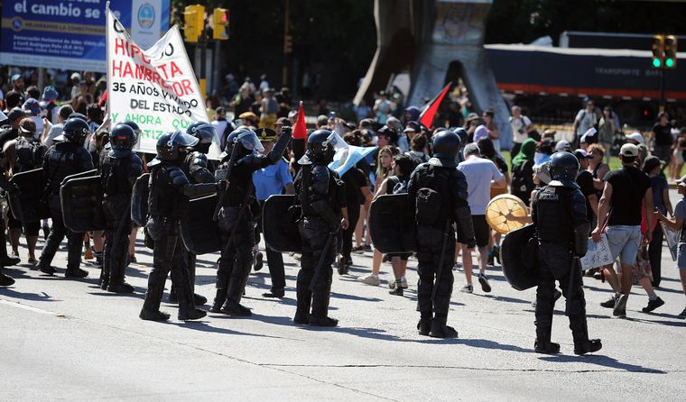 Cerca de las 17 parte de la movilización se desconcentró y una columna de manifestantes volvió al kilómetro cero a esperar la concentración de las 19.