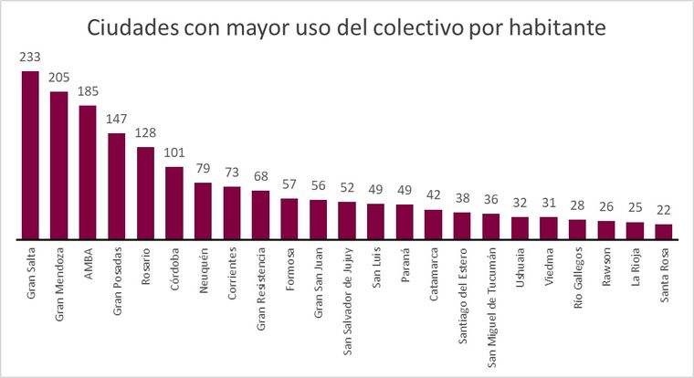 Un estudio de la Asociación Argentina de Empresarios del Transporte Automotor sobre el uso del colectivo revela un mapa de la movilidad que invierte la lógica. En lugar de que el mayor número de viajes per cápita se concentre en la región con la mayor densidad de población, el análisis muestra una realidad distinta. Ciudades del interior del país lideran la tabla.